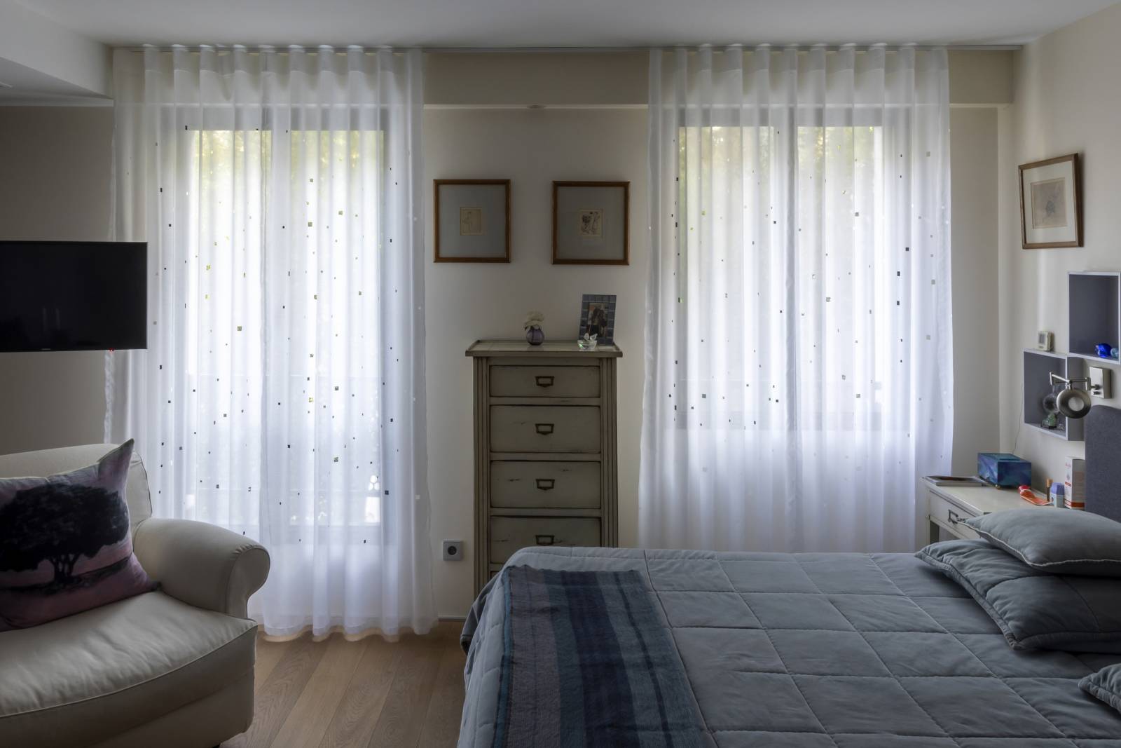 Les bords sont découpés au laser pour une finition minimale et légère. Dans le cas de rideaux très larges avec plusieurs pans assemblés.